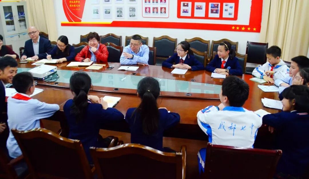 春日的校园,静谧而生动,孩子们迎着和煦的微风向老师们走来……2019年4月18日下午,应成都七中实验学校校长毛道生老师之约,小学部六年级的十位孩子来到二楼会议室,与毛老师和小学部的老师们进行了一次难忘的主题交流。