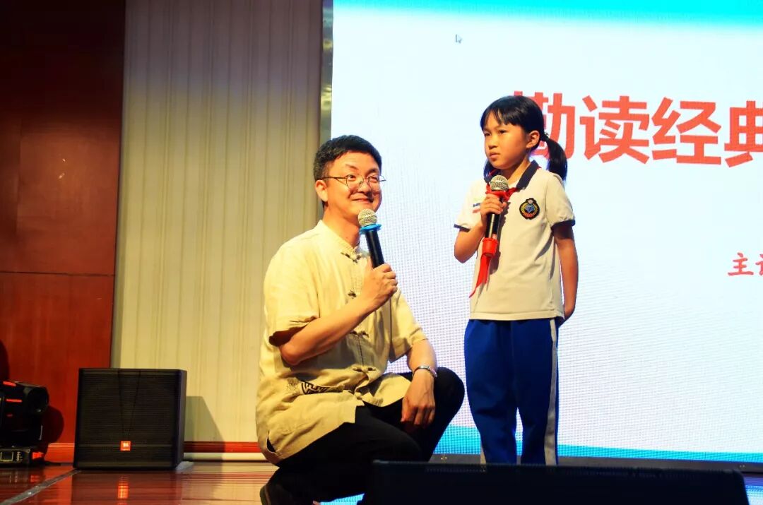 此次讲座的内容涉猎颇广,从《三字经》到《弟子规》,从《千字文》到《论语》……陈岳叔叔用儿童化的语言娓娓道来,春风化雨般的亲切与博识让大家听得津津有味,孩子们踊跃互动,气氛异常热烈。