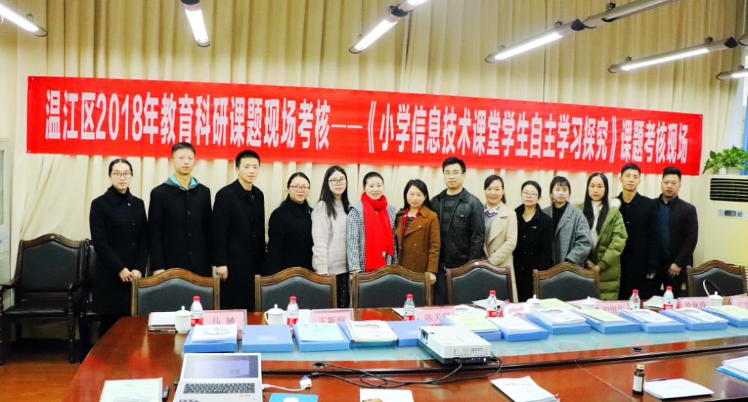 2018年12月4日上午,温江区2018年教育科研课题现场考核会在成都七中实验学校小学部举行,温江区研培中心教育科研教研员冯文霞老师带领考核小组莅临考核现场指导课题研究工作,会议由教导处陈天翠主任主持,我校区级课题《小学信息技术课堂学生自主学习探究》接受了课题专家的考核与督导。