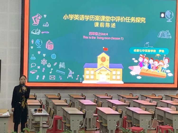 课前,罗艳老师以“小学英语学历案课堂中评价任务探究”为主题进行课前陈述。