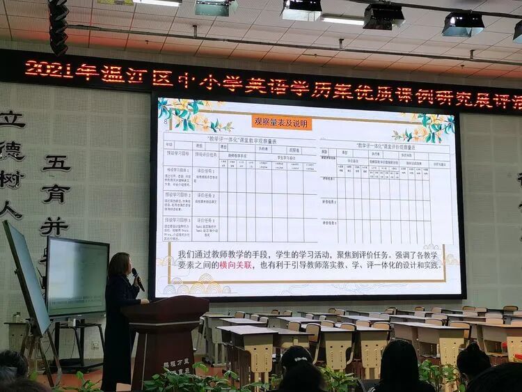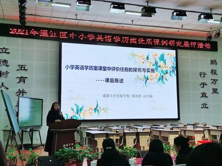 课后研讨陈述环节,高雪梅老师围绕“小学英语学历案课堂中评价任务的探究与实施”的主题进行课后陈述。