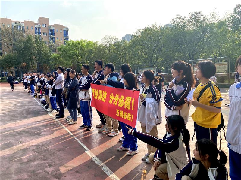 球场边,没有参加比赛的同学为各自的班级球队加油助威,和赛场上的球员们拧成一根叫做集体荣誉感的精神绳索。比赛,不光是球员的事,也是自己的事,更是班集体的事。